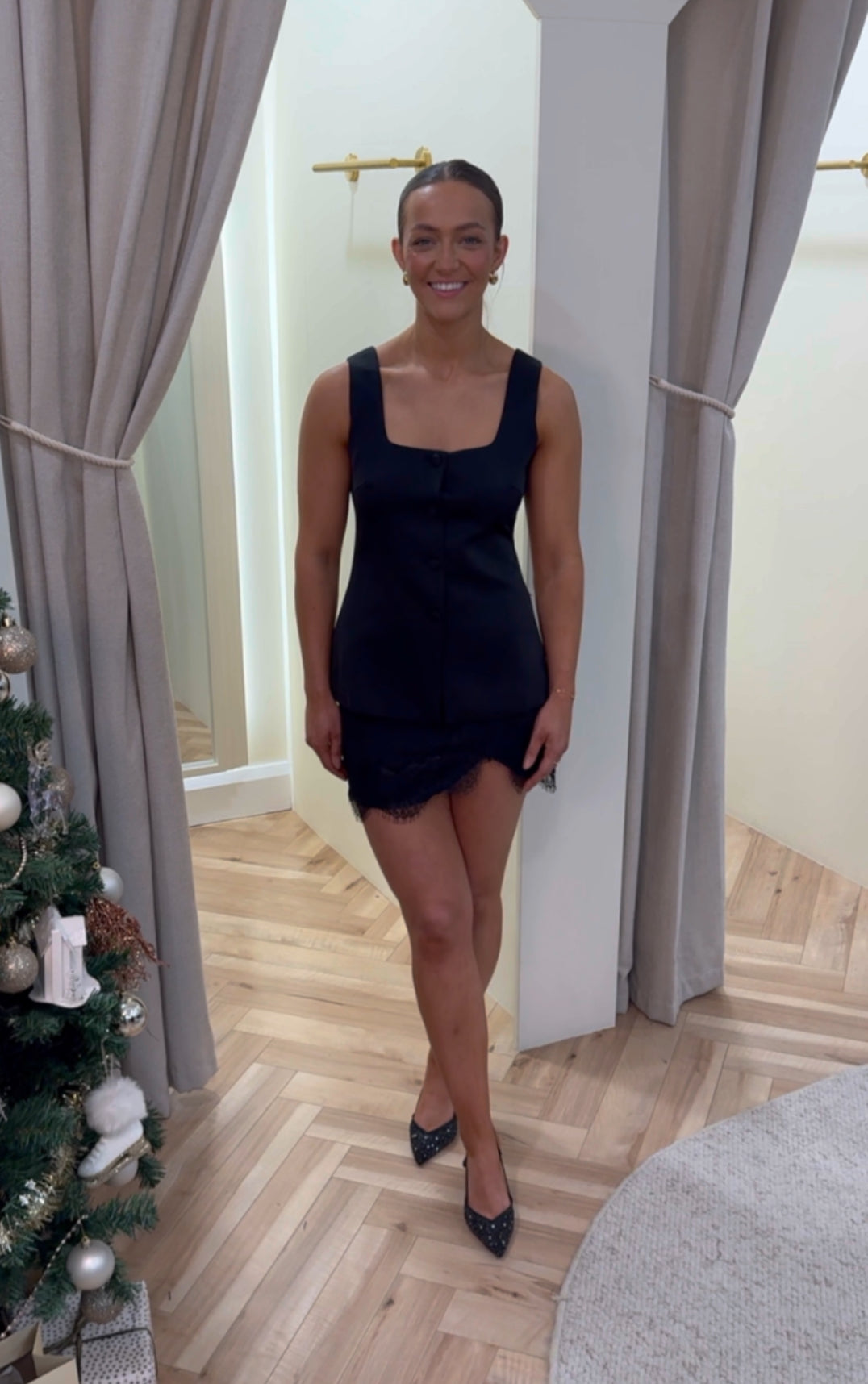 Feminine, flirty, and effortlessly stylish our mini skirt with delicate lace trim and a hidden side zip is a must-have for every wardrobe. The lace detailing adds a touch of romance, while the sleek silhouette keeps it modern and versatile. Pair it with a fitted blouse for an elegant look or a cropped jumper for a playful twist. Chic, subtle, and oh-so-stylish it’s the perfect piece to elevate any outfit.