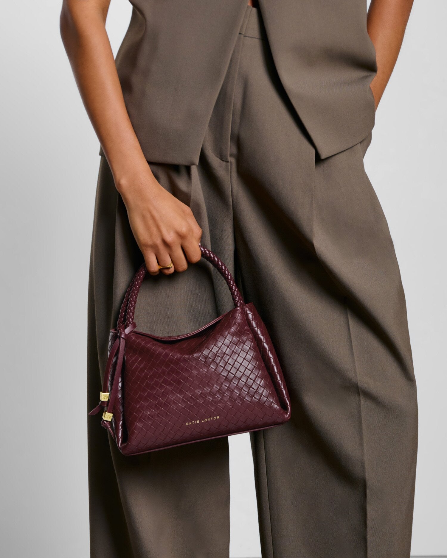 Showcasing a beautifully woven texture design, our Nova Top Handle Bag in Cherry adds texture and dimension to any look. Considered details include braided top handles, a signature branded bag charm, and a concealed magnetic closure, making it an effortlessly stylish grab-and-go piece.