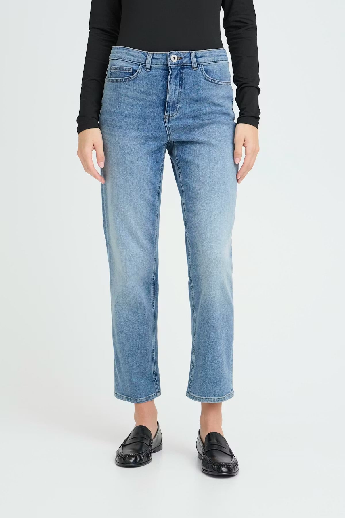 Straight-leg jeans showcase a classic five-pocket style with a zip fly and button closure. Subtle fading adds a touch of attitude, while the full-length cut offers an easy, universally flattering fit.