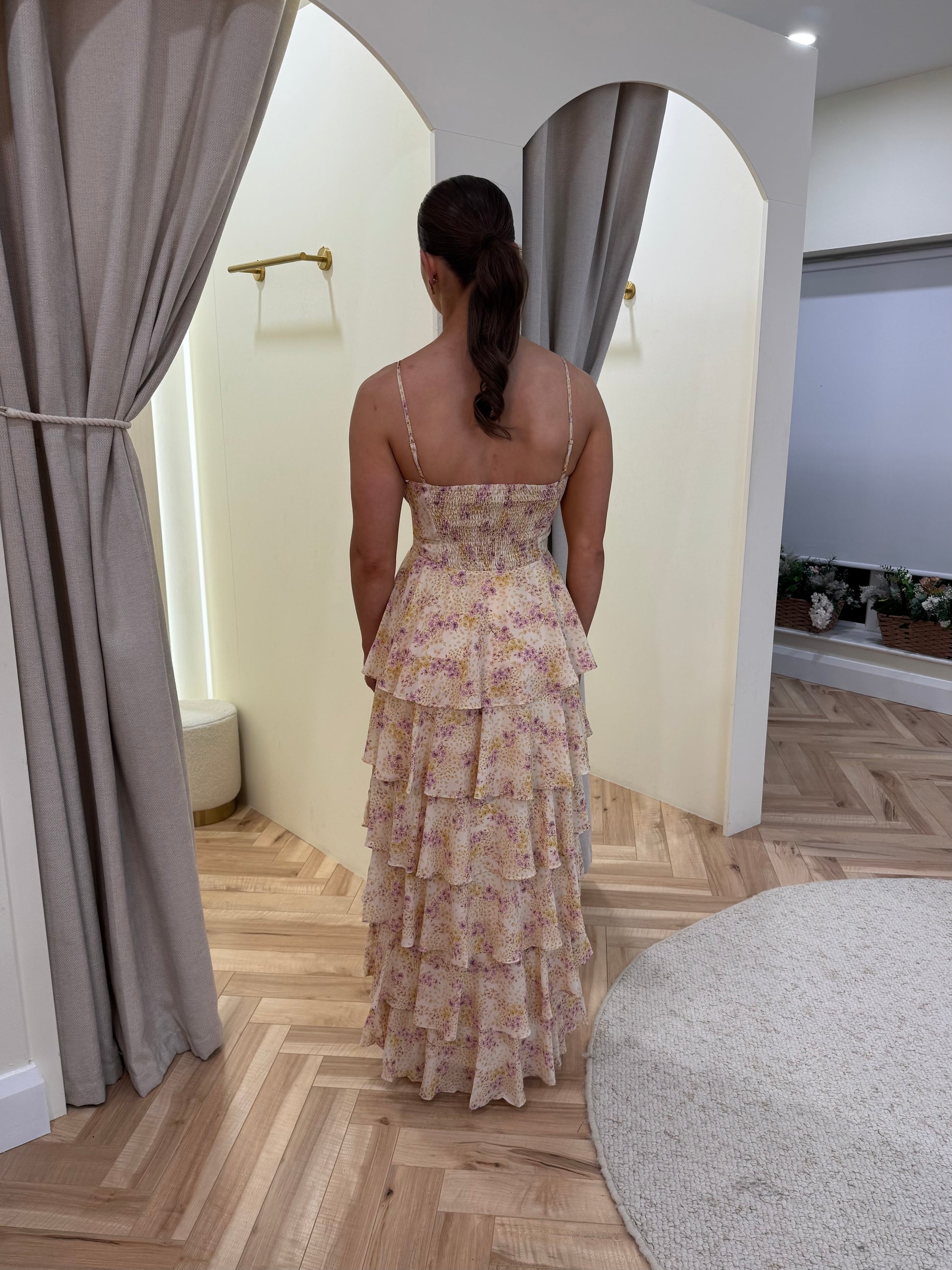 Madison Ruffle Maxi Dress in Ditsy Floral