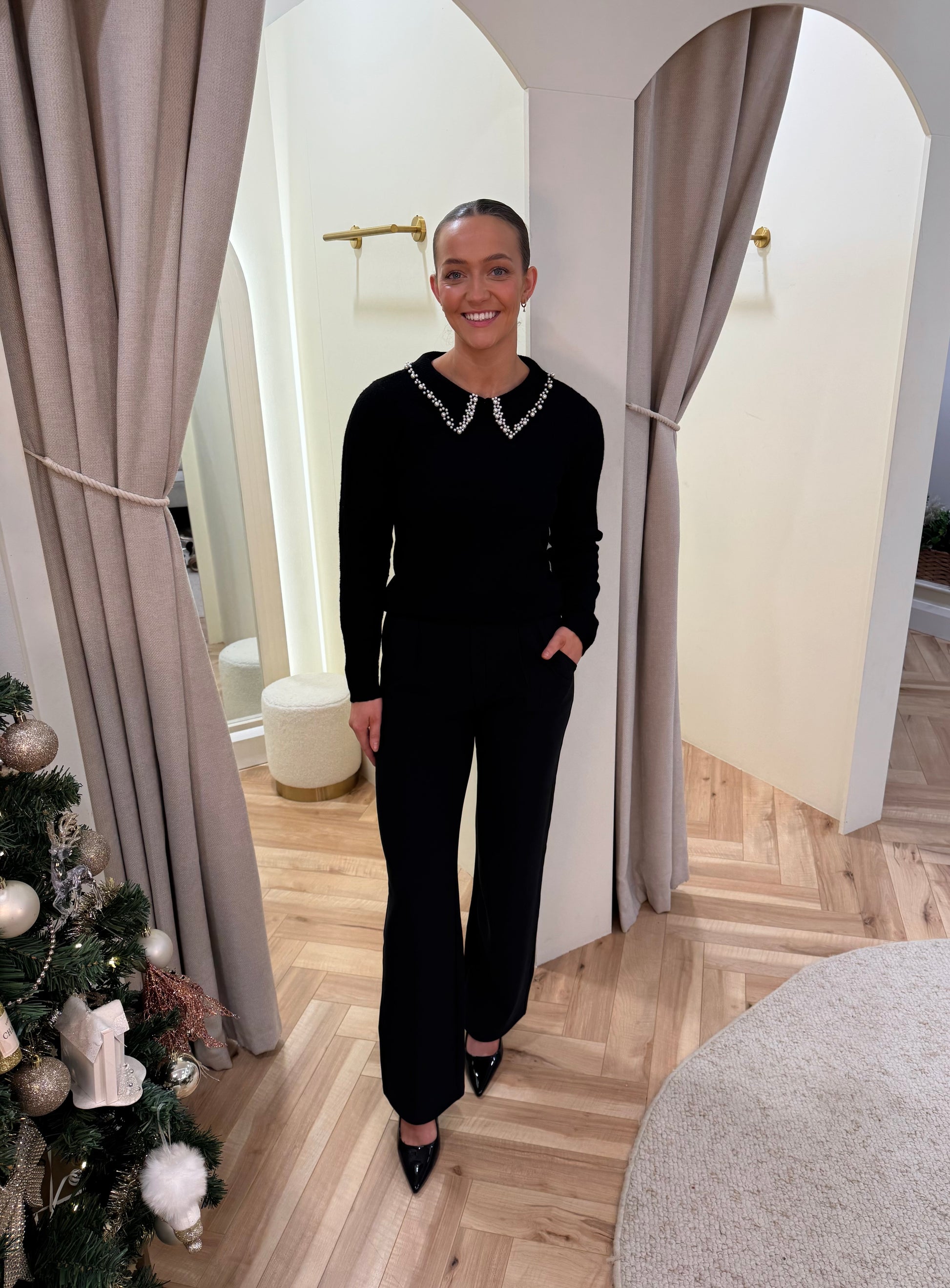• Long sleeve knitted pullover • Pearl-detailed collar • Soft, stretchy knit • Regular fit • Length: 57 cm in size M • Sleeve length: 60 cm in size M