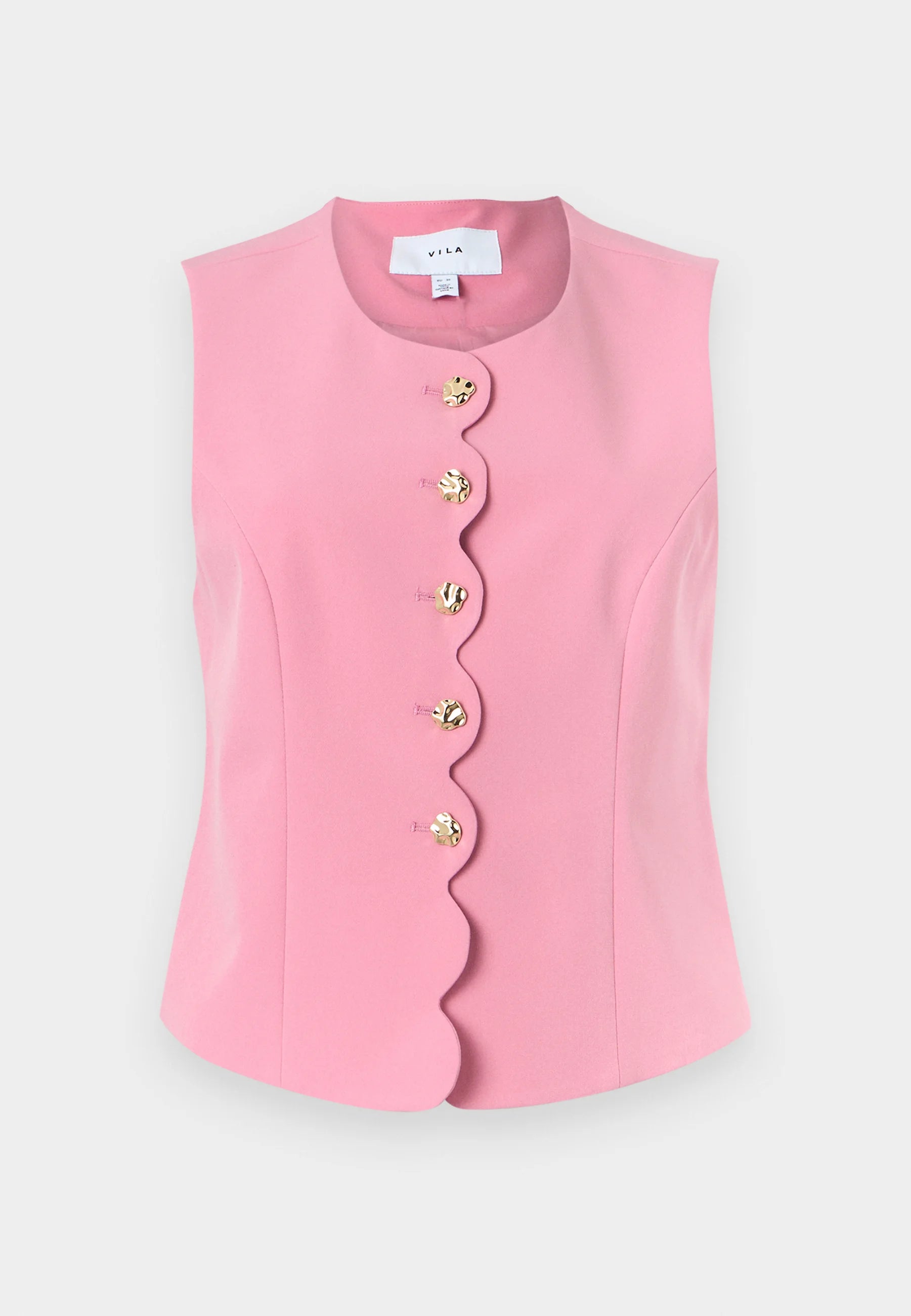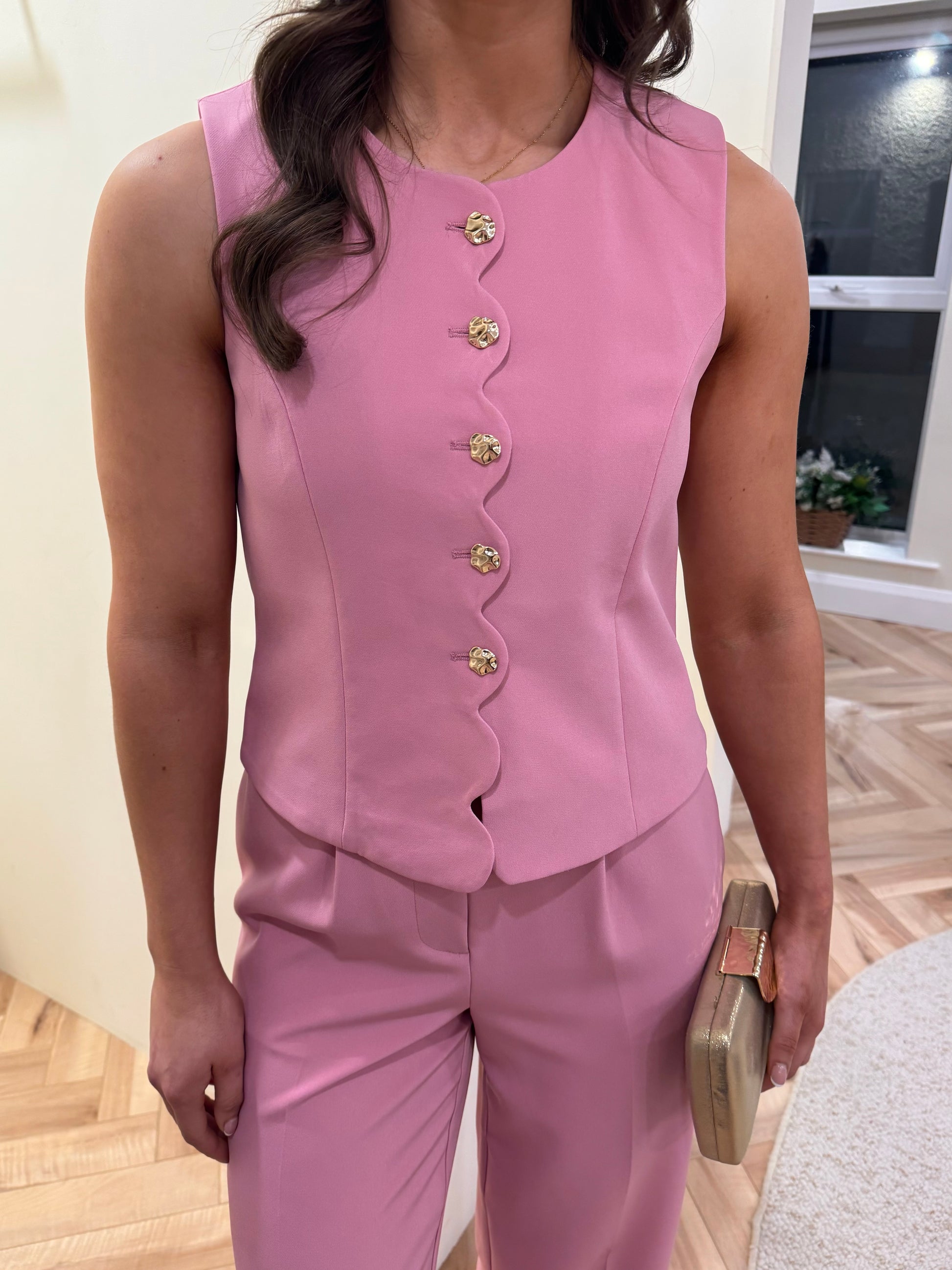 Beautiful pink Waistcoat featuring a scalloped trim with gold button front, pair with our matching Viiris Trousers to complete the look